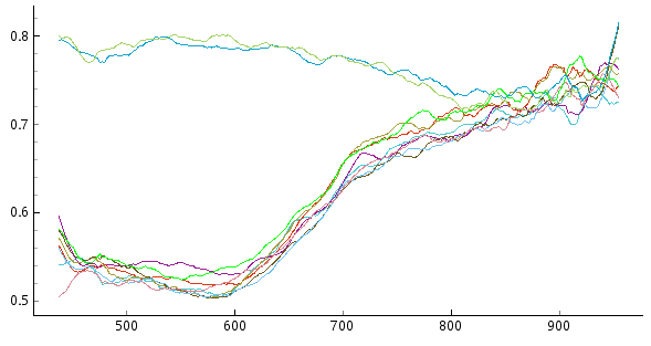 从反射率曲线看,塑料薄膜与铁粉有明显区别,由于铁粉较微小,对相机分辨率要求较高。